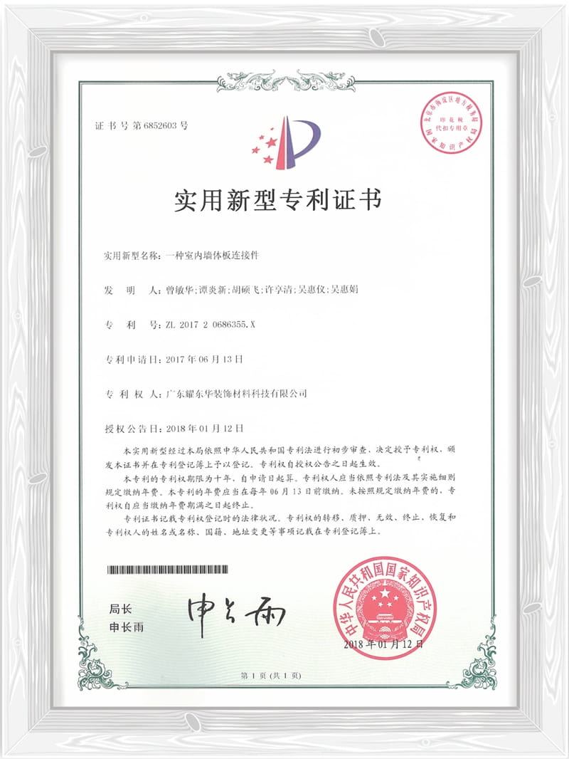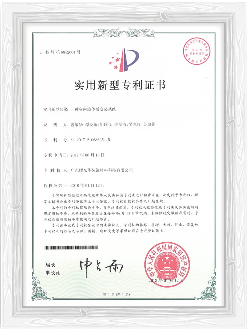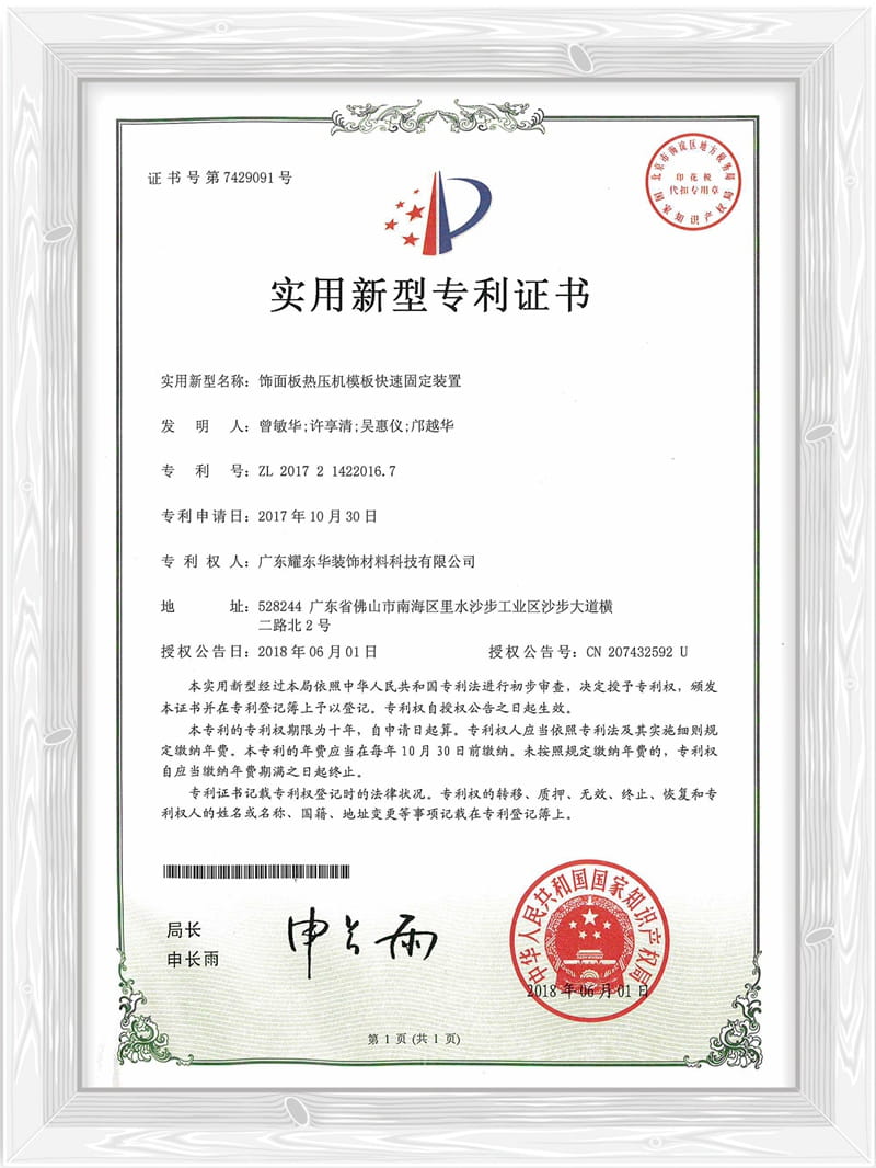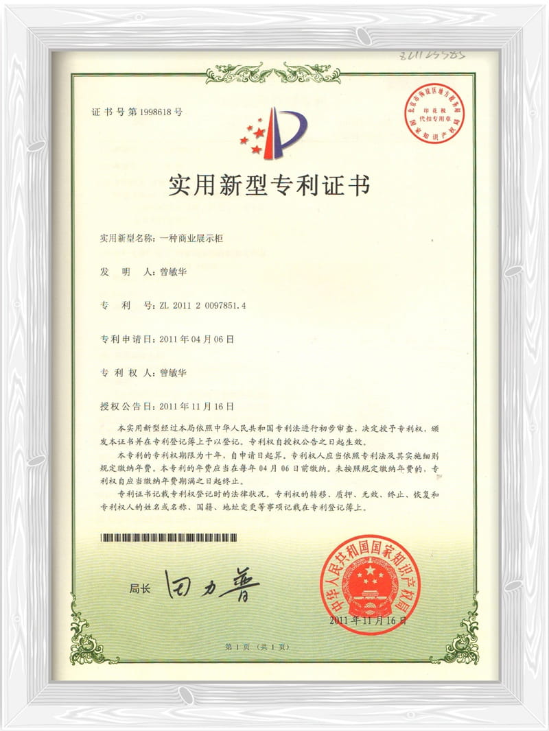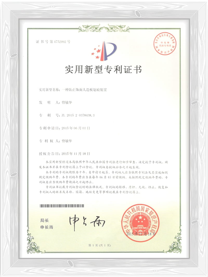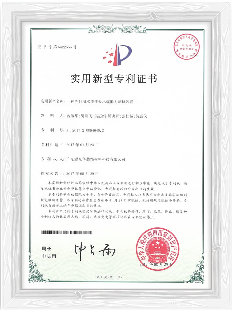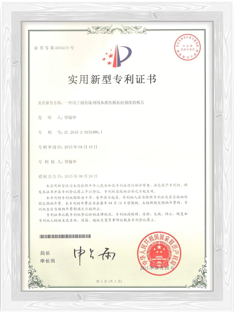 • 一种陈列用木质挂板承载能力测试装置专利证书