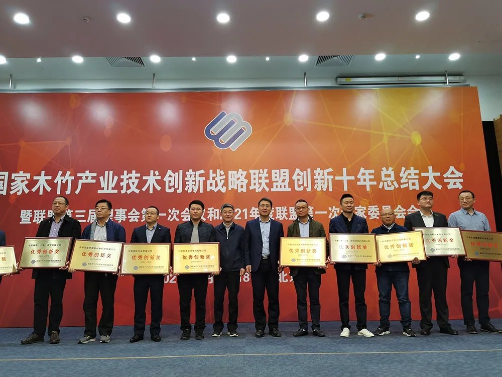 2021年4月16日至18日,国家林竹产业技术创新战略联盟(以下简称“联盟”)在北京召开创新十年总结大会,耀东华坚持不懈勇创新,脚踏实地做产品,在本次会议中荣获“优秀创新奖”牌匾。