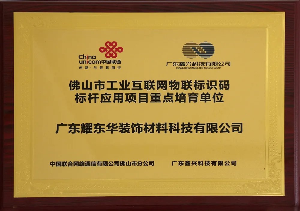 耀东华被授予“佛山市工业互联网物联标识码标杆应用项目重点培育单位”
