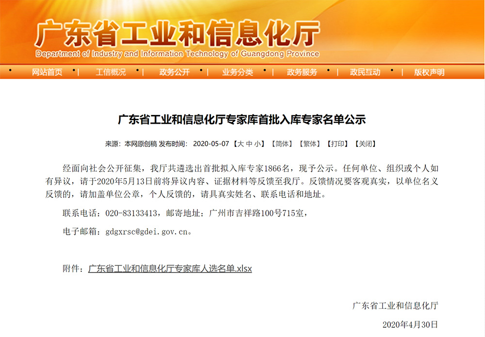 2020-05-30耀东华公司曾敏华董事长首批入库“广东省工业和信息化厅专家库”